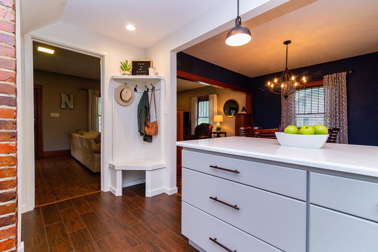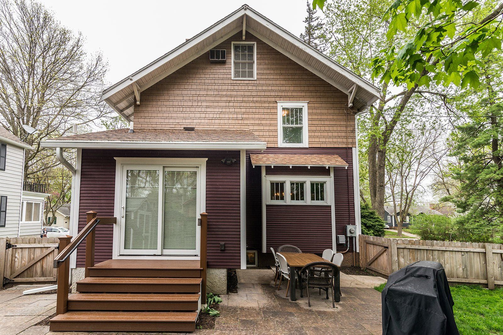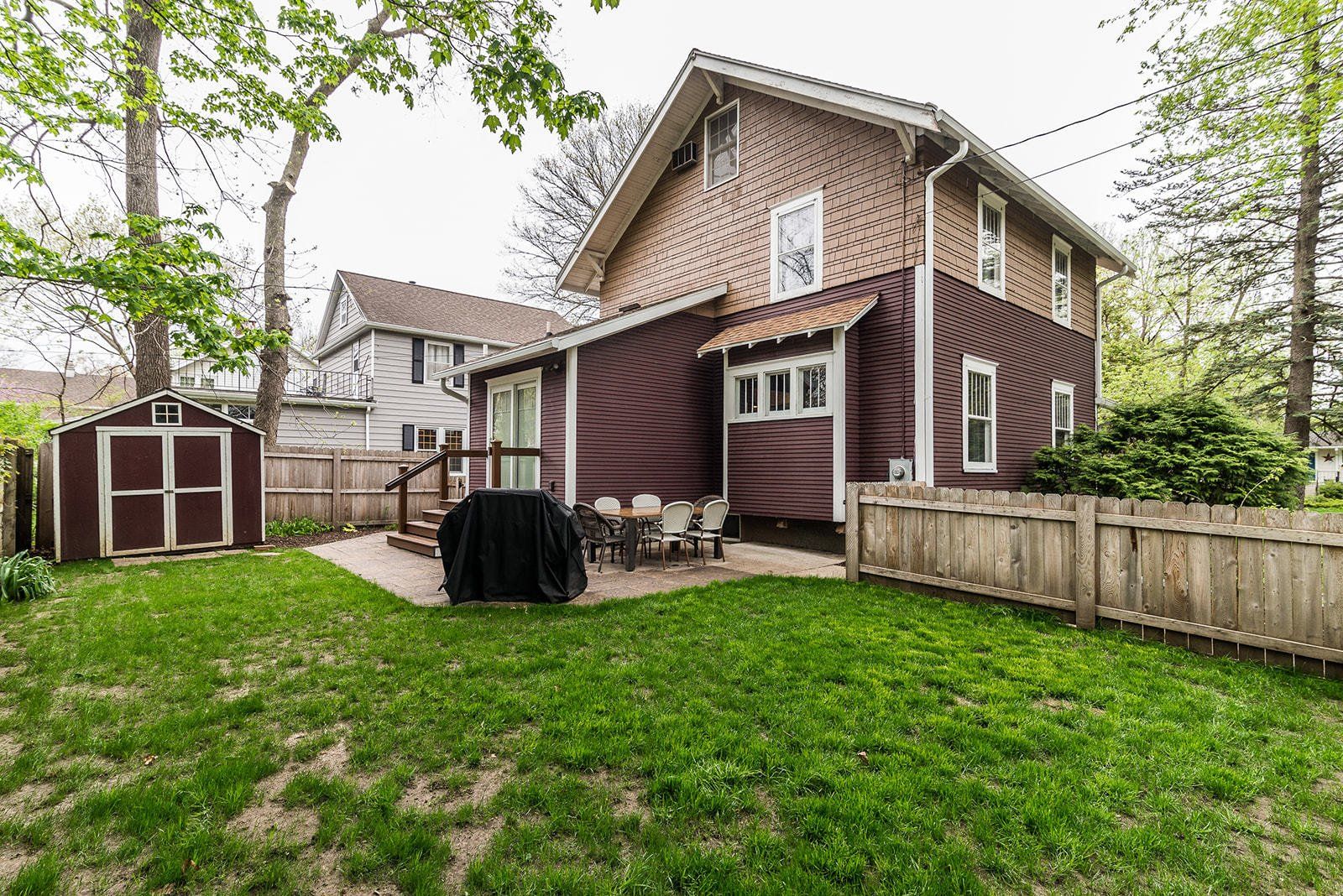 Character + modern updates in this amazing Ames property! Stunning remodeled kitchen is a complete wow factor! Open shelving, stainless appliances, quartz counters, pantry closet and painted cabinets make this kitchen light and bright and super functional for the modern family. Brick column accents, built in dining storage, and craftsman style columns add to the character. Original woodwork staircase leads you to three bedrooms upstairs with updated paint and full bath nearby. Attic offers room for flex space to make your own or additional storage. Tv watching area in basement with space for fridge, updated windows in LL level, and additional full bath. Relax on the covered front porch or out back in your fenced in yard. Completely move in ready and super clean. Appealing property to make your next home!