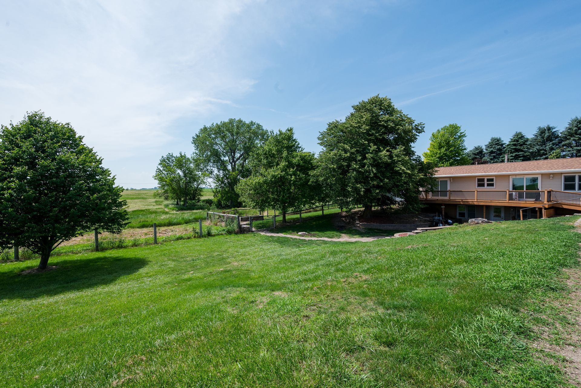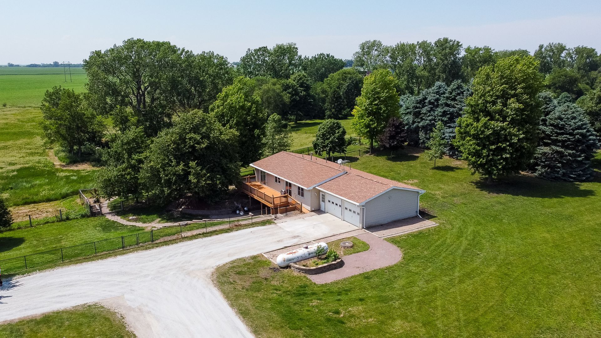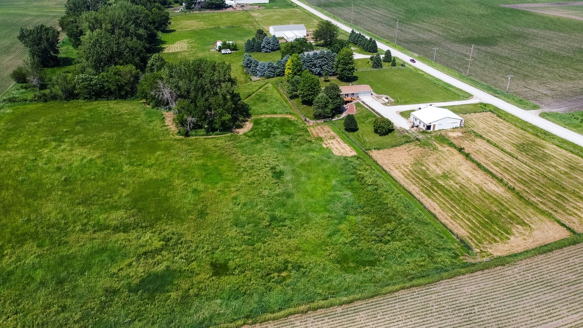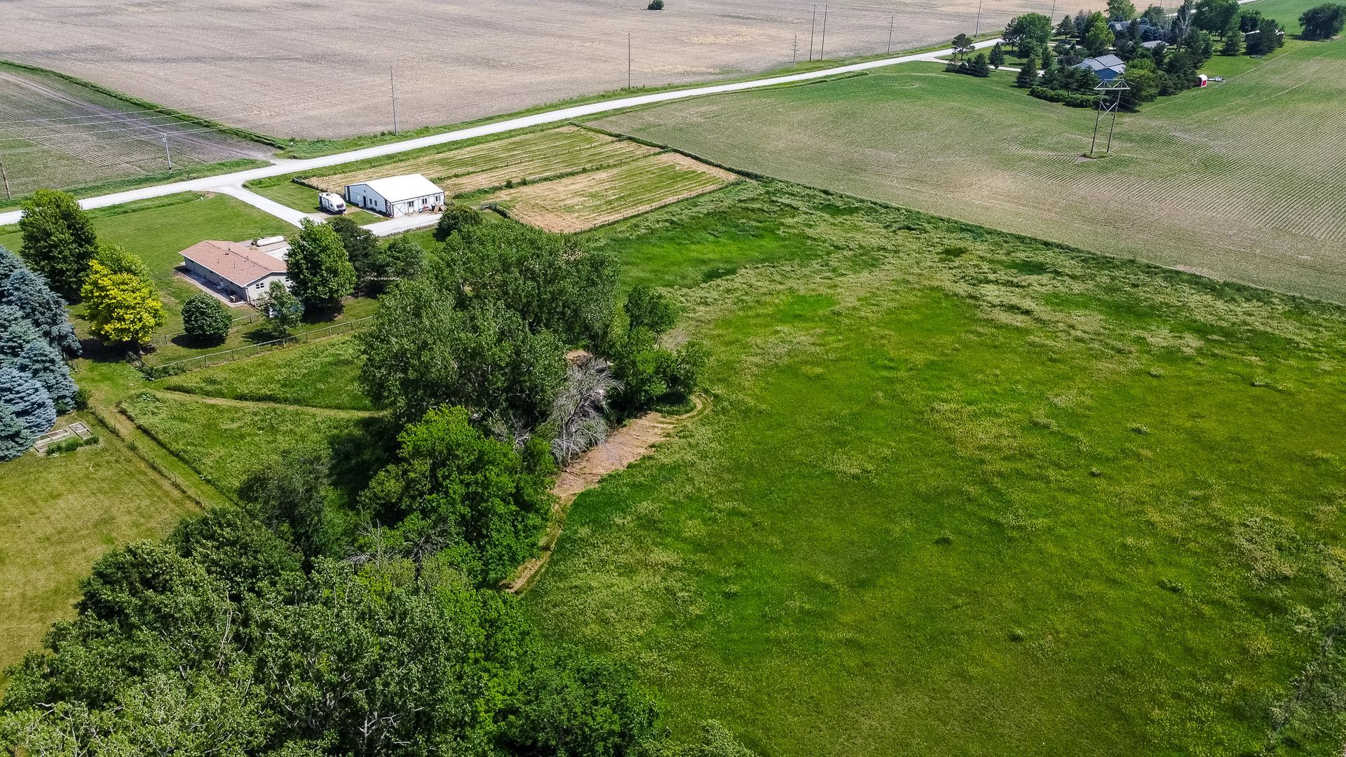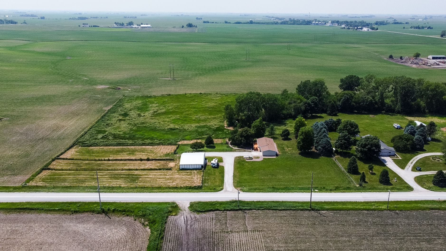 Endless possibilities on nearly 8 Acres between Ames & Huxley! This unique 7.92 horse acreage offers the perfect blend of peaceful rural living and convenient access to city amenities. Nestled on almost 8 acres in a prime central location, the property is ideal for horse enthusiasts, hobby farmers, or anyone seeking space and privacy.The barn is equipped with five stalls (inc. three private paddocks) a chicken area, & hay/farm equipment storage area. The 2000sf barn is ready for your animals—or for generating income from local boarders - Less than 10 min drive for ISU boarders! The yard just east of home is a perfect spot for a round horse pen; the 50-amp camper hookup is just north of barn. The home features include Pella windows, Shrock cabinetry, Bosch d/w, full size fridge/freezer, two sets of w/d, and vinyl plank flooring on the main level. Enjoy the benefits of updated mechanicals, including an updated roof (2017) new heat/AC (2018) and updated low maintenance decking and chain link fencing. Three bedrooms on the main floor & 1.5 bath. The lower level includes a walk out basement with apartment with kitchenette, full bath and non-conforming bedroom, offering potential for guests or rental income. Property has great bones but does need cosmetic updates & a vision for the LL. Whether you dream of a homestead, income property, or peaceful retreat, this acreage delivers unmatched opportunity in a sought-after location.