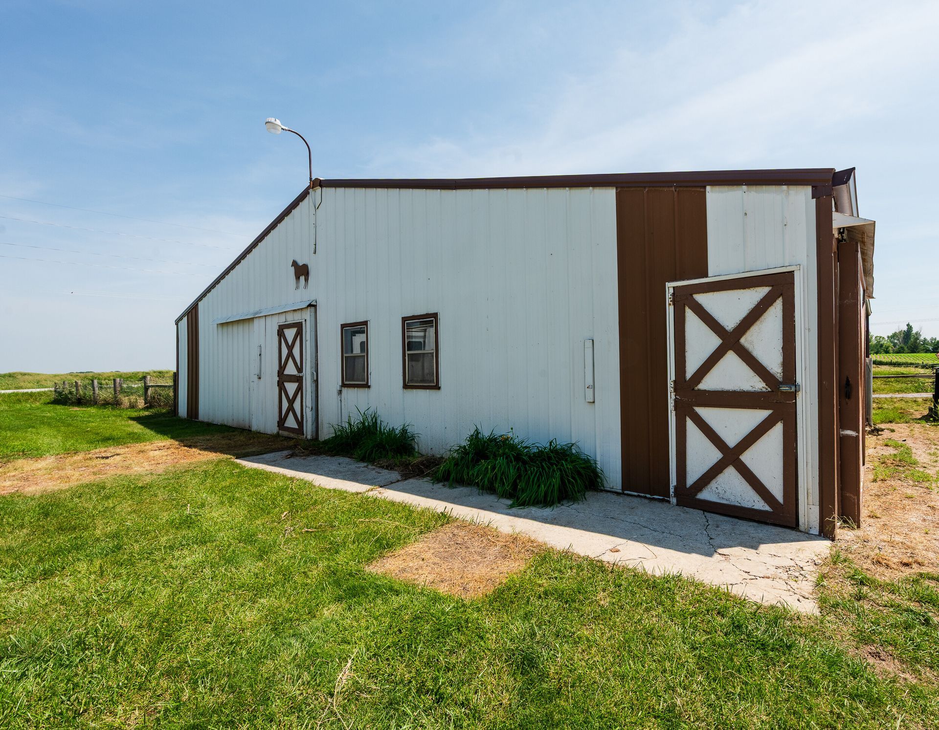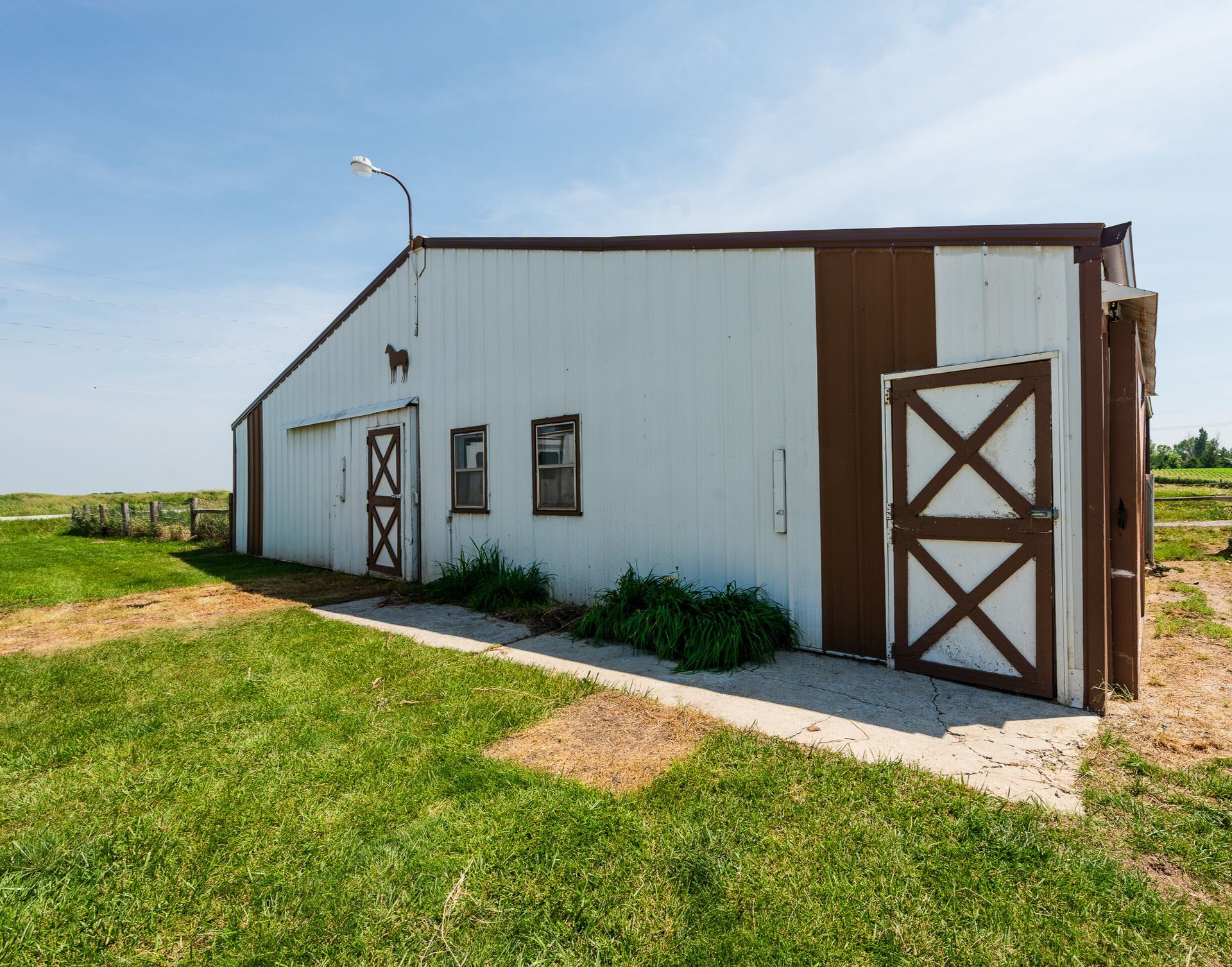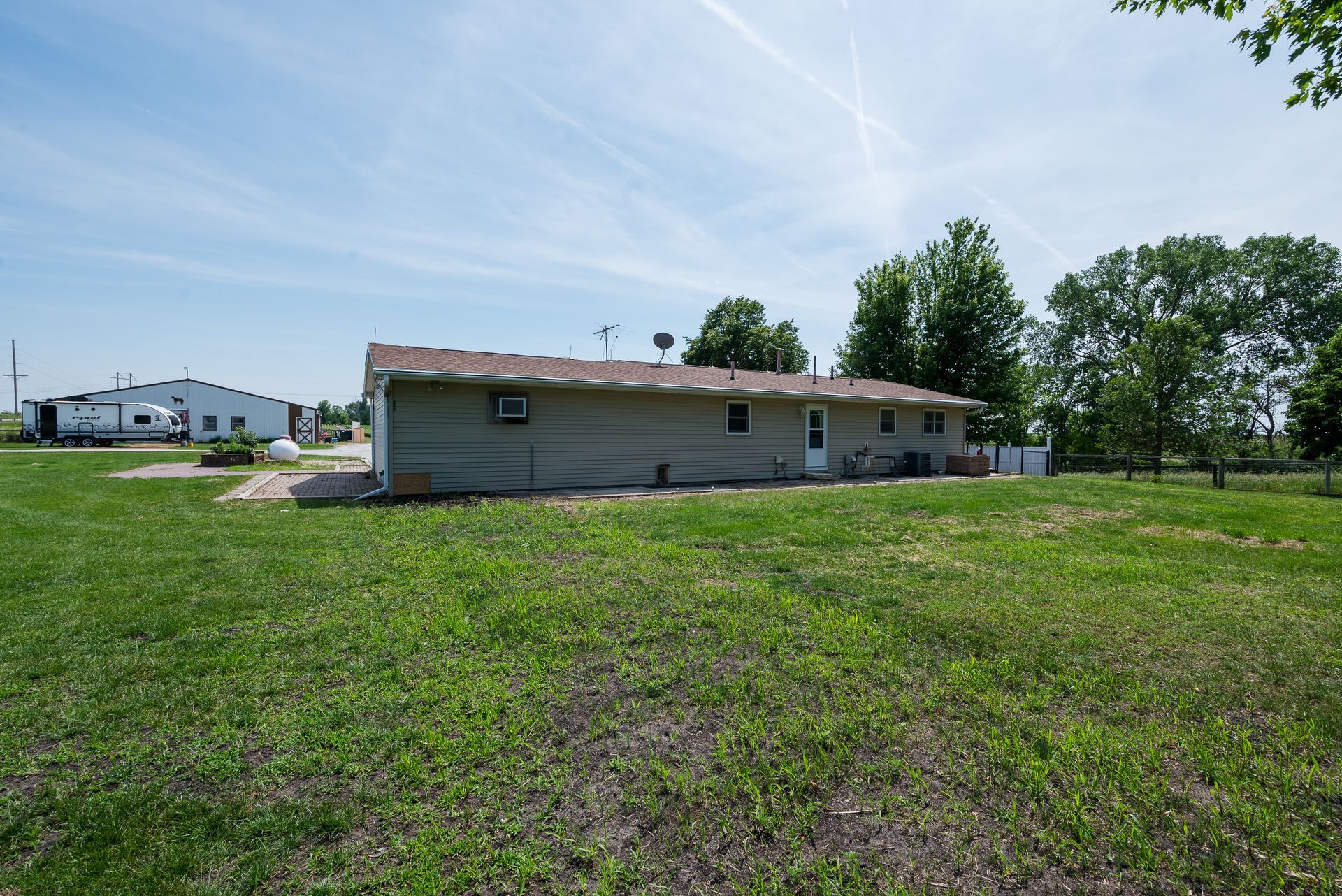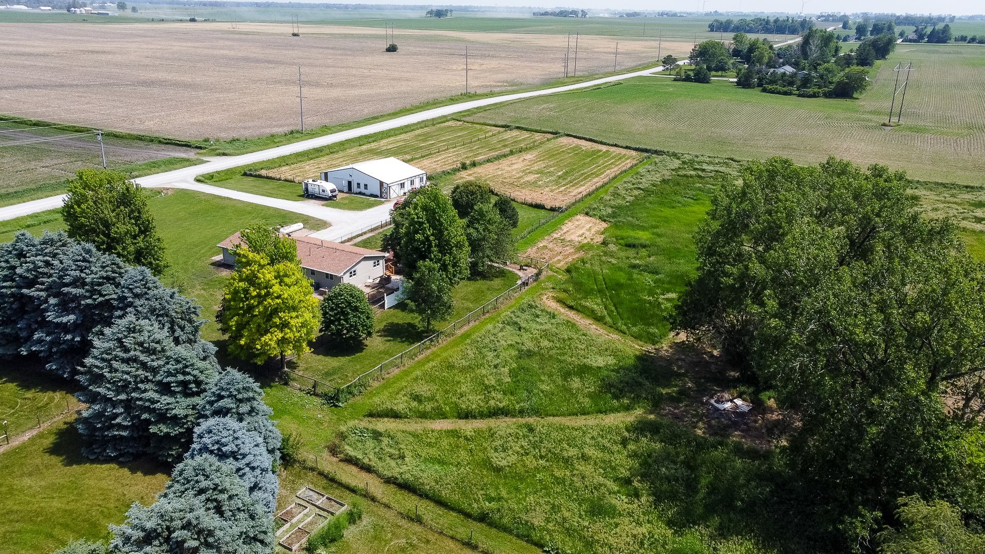 Endless possibilities on nearly 8 Acres between Ames & Huxley! This unique 7.92 horse acreage offers the perfect blend of peaceful rural living and convenient access to city amenities. Nestled on almost 8 acres in a prime central location, the property is ideal for horse enthusiasts, hobby farmers, or anyone seeking space and privacy.The barn is equipped with five stalls (inc. three private paddocks) a chicken area, & hay/farm equipment storage area. The 2000sf barn is ready for your animals—or for generating income from local boarders - Less than 10 min drive for ISU boarders! The yard just east of home is a perfect spot for a round horse pen; the 50-amp camper hookup is just north of barn. The home features include Pella windows, Shrock cabinetry, Bosch d/w, full size fridge/freezer, two sets of w/d, and vinyl plank flooring on the main level. Enjoy the benefits of updated mechanicals, including an updated roof (2017) new heat/AC (2018) and updated low maintenance decking and chain link fencing. Three bedrooms on the main floor & 1.5 bath. The lower level includes a walk out basement with apartment with kitchenette, full bath and non-conforming bedroom, offering potential for guests or rental income. Property has great bones but does need cosmetic updates & a vision for the LL. Whether you dream of a homestead, income property, or peaceful retreat, this acreage delivers unmatched opportunity in a sought-after location.